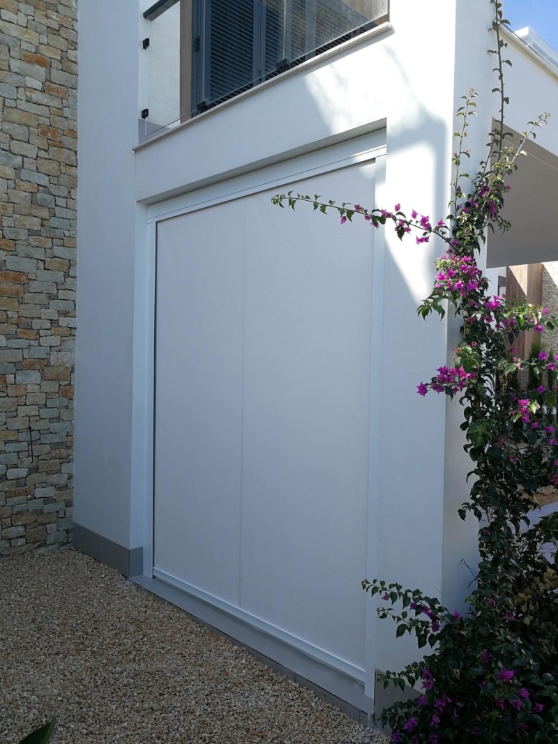 Das Hauptmerkmal des Produkts ist die Möglichkeit, 2 Wickelwellen in denselben Kasten zu integrieren, die unabhängig voneinander betrieben werden können. Der 13,0 x 25,0 cm große Wickelkasten lässt sich leicht öffnen und ist mit einem abnehmbaren Verriegelungssystem ausgestattet. Die Kopfstücke sind aus Aluminiumdruckguss gefertigt und in der gleichen Farbe wie die Markisenstruktur lackiert. Die Markise kann seitlich durch die Kopfstücke oder freitragend mit Hilfe der Führungen befestigt werden. Die Führungen haben die Maße 5,6 x 13,0, sind magnetisch verriegelt und verfügen über ein ZIP-System aus PVC, das durch Federn aus rostfreiem Stahl amortisiert wird. Mit diesem System können gleichzeitig 2 Planen zur Beschattung, Abschirmung, Glas (transparentes PVC) oder Moskitonetz montiert werden. Manuelle Bedienung (Maschine mit Endschalter und abnehmbarer Kurbel) oder motorisiert (normaler Motor, RTS oder IO Home-Control).