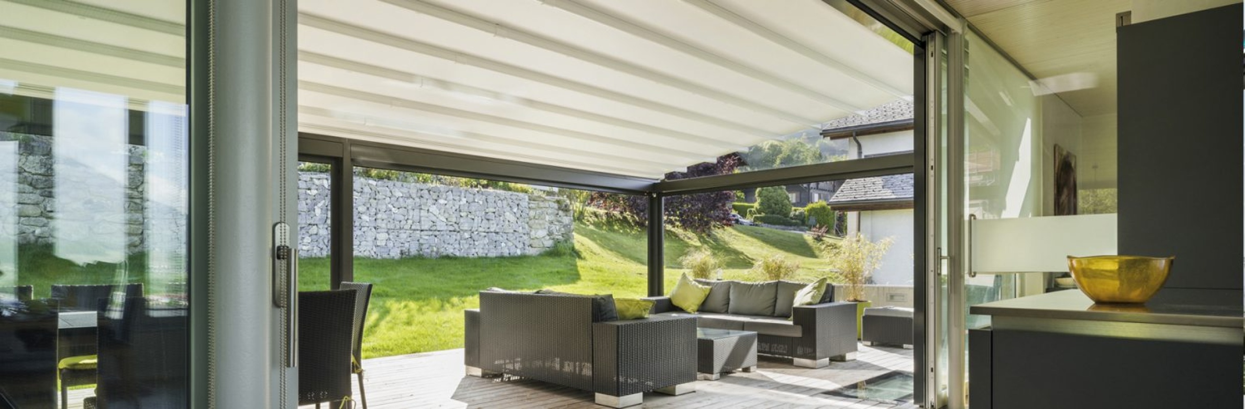 Bioclimatic retractable pergolas incorporate a system of slats that, in addition to being adjustable, can be completely retracted, allowing a total opening of the roof.